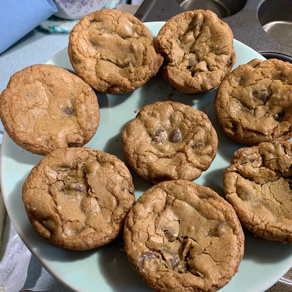 Now bake them for 10-12 minutes. They will be soft, golden brown and slightly under-baked. Don’t worry about this part since the center of the cookies will have reached 165° which is what you need for the eggs to be safe. Let them cool on some cooling racks or slide the sheet of parchment paper off to your counter and let them cool there. Store them in a closed container to keep them moist.